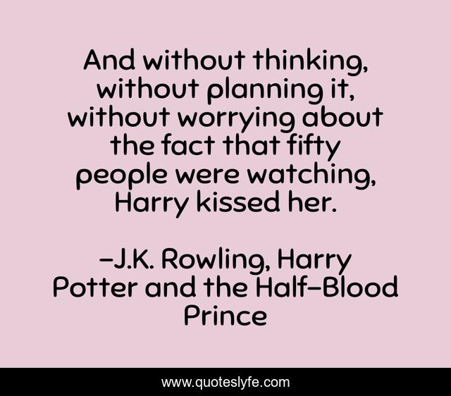 This page presents the quote "And without thinking, without planning it, without worrying about the fact that fifty people were watching, Harry kissed her.". Author of this quote is J.K. Rowling, Harry Potter and the Half-Blood Prince. .