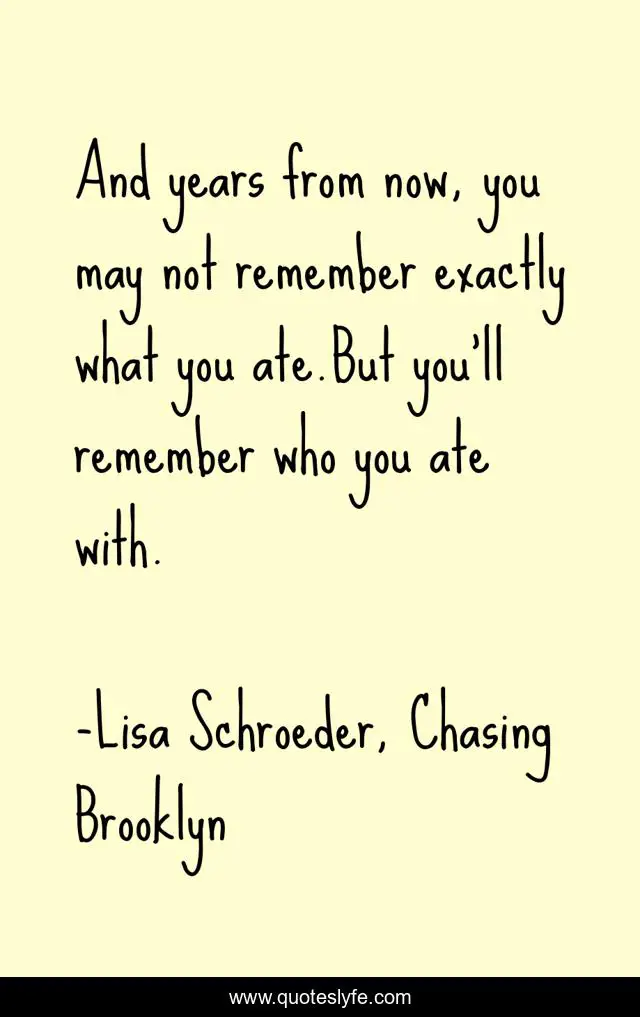 This page presents the quote "And years from now, you may not remember exactly what you ate.But you’ll remember who you ate with.". Author of this quote is Lisa Schroeder, Chasing Brooklyn. .