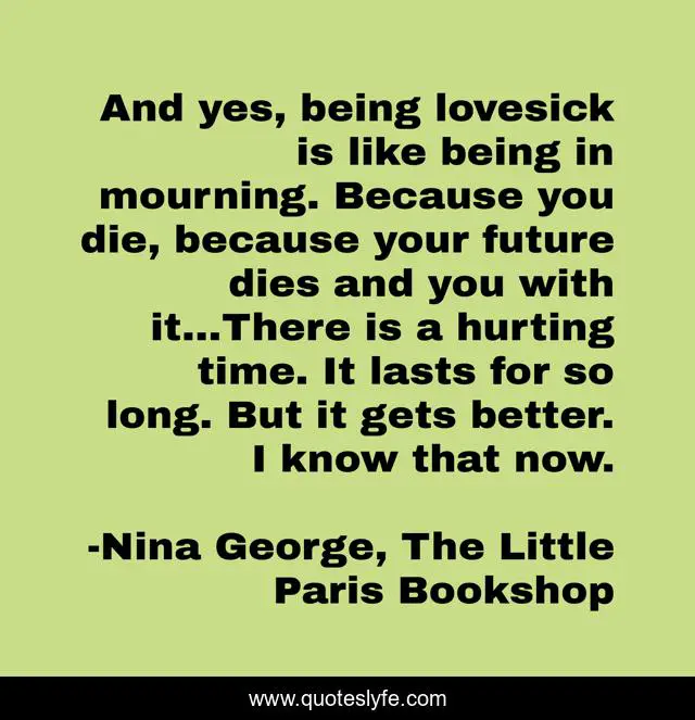 And yes, being lovesick is like being in mourning. Because you die, because your future dies and you with it...There is a hurting time. It lasts for so long. But it gets better. I know that now.