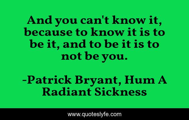 "Patrick Bryant, Hum A Radiant Sickness Quotes." Quoteslyfe.com, 2025. Fri. 05 Dec. 2025. <https://www.quoteslyfe.com/quote/And-you-can-t-know-it-because-44350>.