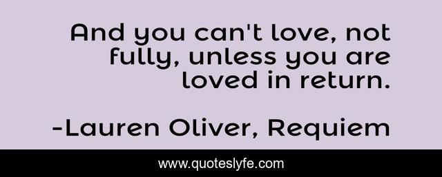 This page presents the quote "And you can't love, not fully, unless you are loved in return.". Author of this quote is Lauren Oliver, Requiem. This quote is about love, affection,.