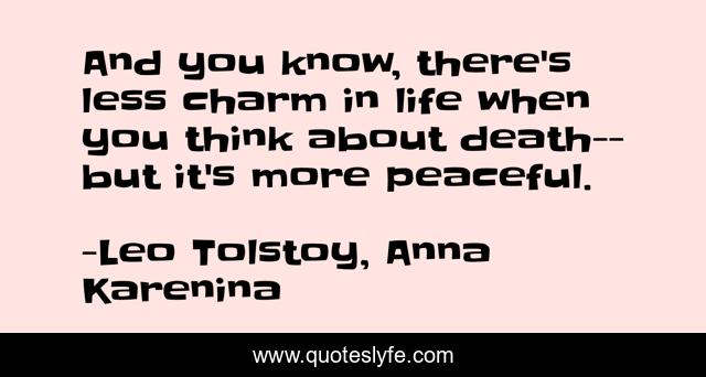This page presents the quote "And you know, there's less charm in life when you think about death--but it's more peaceful.". Author of this quote is Leo Tolstoy, Anna Karenina. This quote is about life, death,.