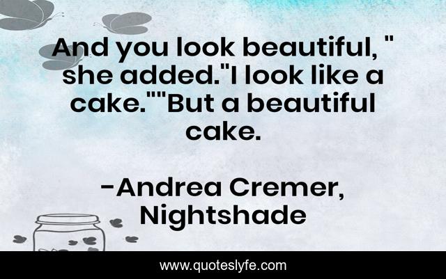 This page presents the quote "And you look beautiful, " she added."I look like a cake.""But a beautiful cake.". Author of this quote is Andrea Cremer, Nightshade. This quote is about funny, comedy, nightshade,.
