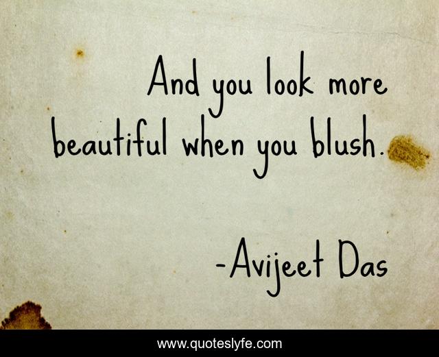 This page presents the quote "And you look more beautiful when you blush.". Author of this quote is Avijeet Das. This quote is about beautiful, love, love-poems, poetry, blush, affection,.