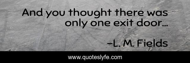 This page presents the quote "And you thought there was only one exit door...". Author of this quote is L. M. Fields. This quote is about philosophy-of-mind, twisted-fairy-tales, alice-in-wonderland-reference, life-experience, horrific-realization,.