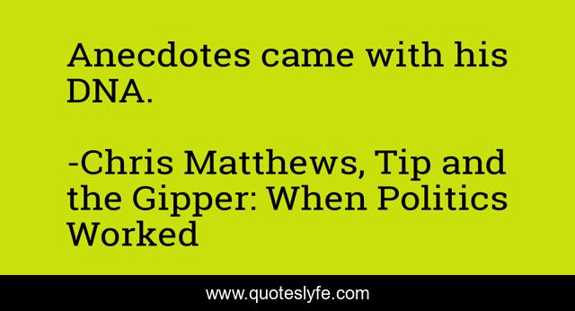 This page presents the quote "Anecdotes came with his DNA.". Author of this quote is Chris Matthews, Tip and the Gipper: When Politics Worked. This quote is about heritage, culture, legac, legend, narrative,.