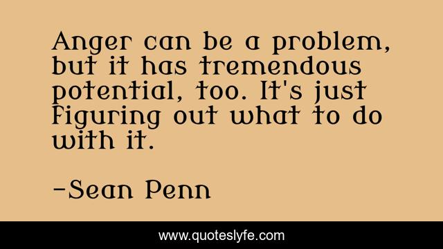 This page presents the quote "Anger can be a problem, but it has tremendous potential, too. It's just figuring out what to do with it.". Author of this quote is Sean Penn. This quote is about problem, potential, just,.