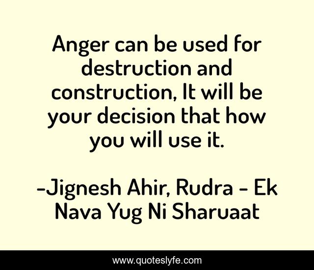 "Jignesh Ahir, Rudra - Ek Nava Yug Ni Sharuaat Quotes." Quoteslyfe.com, 2025. Fri. 05 Dec. 2025. <https://www.quoteslyfe.com/quote/Anger-can-be-used-for-destruction-and-217721>.