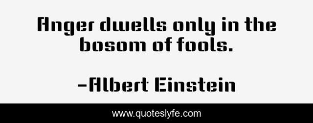 This page presents the quote "Anger dwells only in the bosom of fools.". Author of this quote is Albert Einstein. .