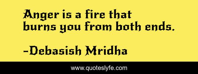 This page presents the quote "Anger is a fire that burns you from both ends.". Author of this quote is Debasish Mridha. This quote is about burns-from-both-ends, philosophy, debasish-mridha, quotes, fire-that-burns, debasish-mridha-md, inspirational, anger, enthusiasm,.