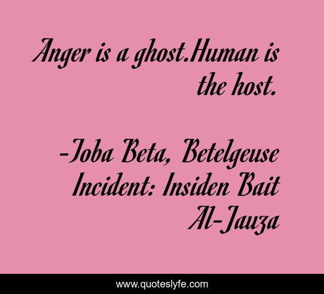 "Toba Beta, Betelgeuse Incident: Insiden Bait Al-Jauza Quotes." Quoteslyfe.com, 2025. Fri. 05 Dec. 2025. <https://www.quoteslyfe.com/quote/Anger-is-a-ghost-Human-is-the-161353>.