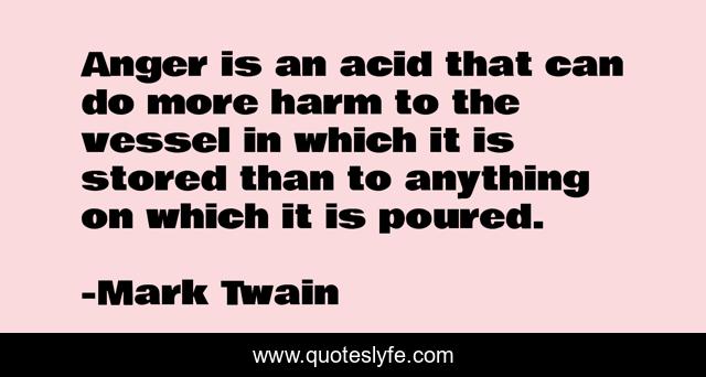 This page presents the quote "Anger is an acid that can do more harm to the vessel in which it is stored than to anything on which it is poured.". Author of this quote is Mark Twain. .