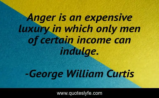 This page presents the quote "Anger is an expensive luxury in which only men of certain income can indulge.". Author of this quote is George William Curtis. This quote is about men, luxury, expensive,.