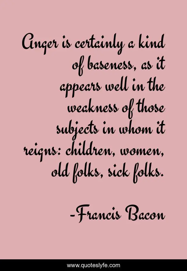 "Francis Bacon Quotes." Quoteslyfe.com, 2025. Fri. 05 Dec. 2025. <https://www.quoteslyfe.com/quote/Anger-is-certainly-a-kind-of-baseness-326953>.