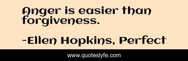 This page presents the quote "Anger is easier than forgiveness.". Author of this quote is Ellen Hopkins, Perfect. This quote is about perfect, life, ellen-hopkins, poetry, impulse, young-adult,.