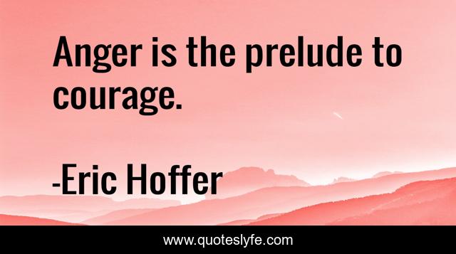 This page presents the quote "Anger is the prelude to courage.". Author of this quote is Eric Hoffer. This quote is about anger, courage,.