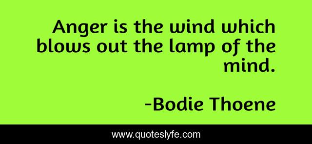 This page presents the quote "Anger is the wind which blows out the lamp of the mind.". Author of this quote is Bodie Thoene. This quote is about anger, thinking, metaphor,.