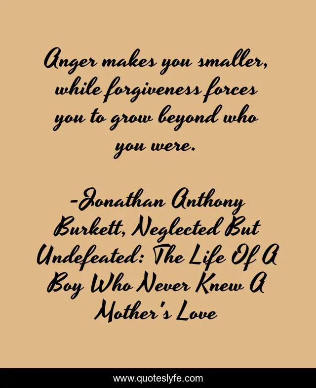 "Jonathan Anthony Burkett, Neglected But Undefeated: The Life Of A Boy Who Never Knew A Mother's Love Quotes." Quoteslyfe.com, 2025. Fri. 05 Dec. 2025. <https://www.quoteslyfe.com/quote/Anger-makes-you-smaller-while-forgiveness-forces-91035>.