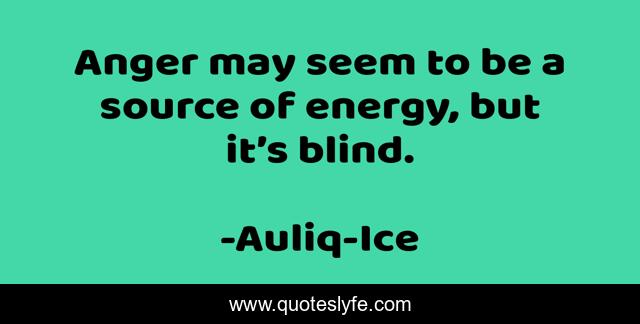 This page presents the quote "Anger may seem to be a source of energy, but it’s blind.". Author of this quote is Auliq-Ice. This quote is about anger, forgiveness, hatred, hate,.