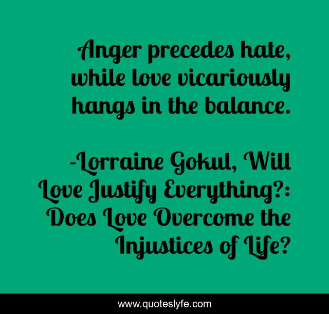 "Lorraine Gokul, Will Love Justify Everything?: Does Love Overcome the Injustices of Life? Quotes." Quoteslyfe.com, 2025. Fri. 05 Dec. 2025. <https://www.quoteslyfe.com/quote/Anger-precedes-hate-while-love-vicariously-hangs-18548>.