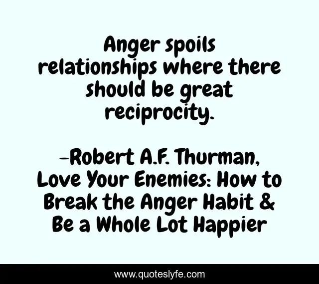 This page presents the quote "Anger spoils relationships where there should be great reciprocity.". Author of this quote is Robert A.F. Thurman, Love Your Enemies: How to Break the Anger Habit & Be a Whole Lot Happier. This quote is about anger, buddhism, self-help, wisdom,.