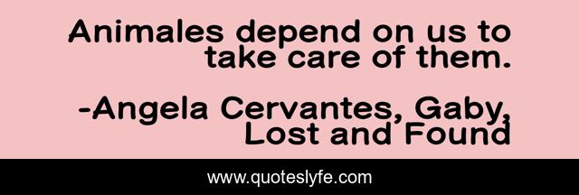"Angela Cervantes, Gaby, Lost and Found Quotes." Quoteslyfe.com, 2025. Fri. 05 Dec. 2025. <https://www.quoteslyfe.com/quote/Animales-depend-on-us-to-take-care-207373>.