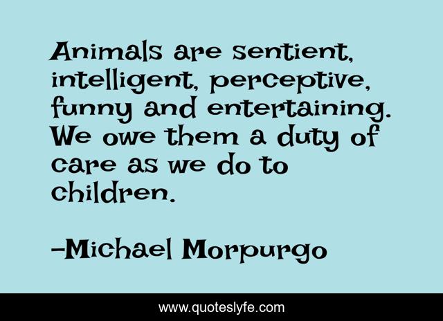 This page presents the quote "Animals are sentient, intelligent, perceptive, funny and entertaining. We owe them a duty of care as we do to children.". Author of this quote is Michael Morpurgo. This quote is about funny, comedy, animals, children,.