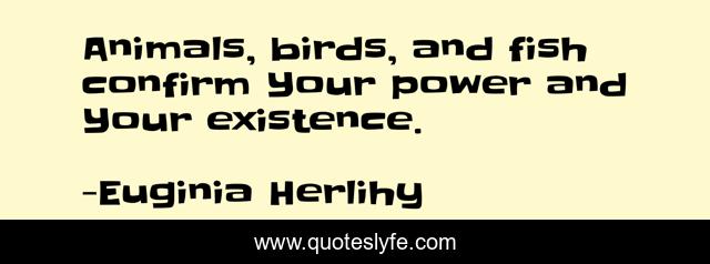 "Euginia Herlihy Quotes." Quoteslyfe.com, 2025. Sat. 06 Dec. 2025. <https://www.quoteslyfe.com/quote/Animals-birds-and-fish-confirm-Your-power-158435>.