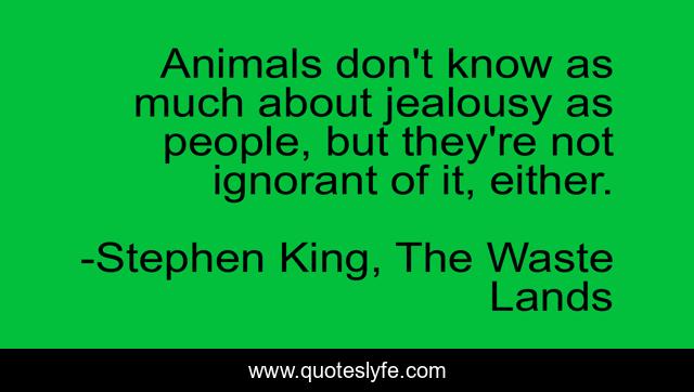 This page presents the quote "Animals don't know as much about jealousy as people, but they're not ignorant of it, either.". Author of this quote is Stephen King, The Waste Lands. This quote is about animals, jealousy,.