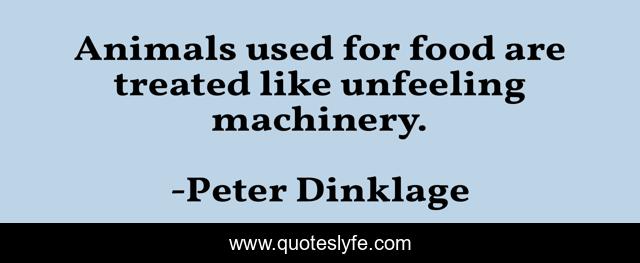 This page presents the quote "Animals used for food are treated like unfeeling machinery.". Author of this quote is Peter Dinklage. This quote is about animals, like, machinery,.