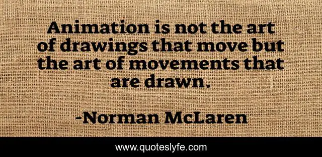 This page presents the quote "Animation is not the art of drawings that move but the art of movements that are drawn.". Author of this quote is Norman McLaren. This quote is about move, animation, drawings,.