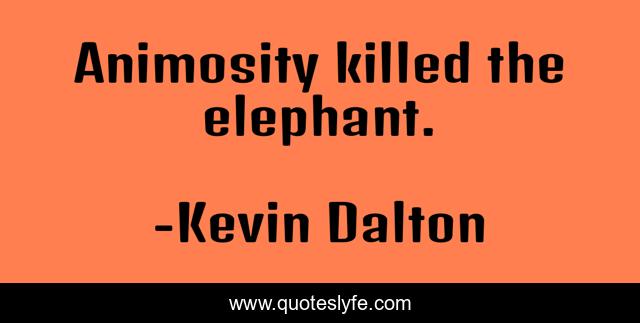 "Kevin Dalton Quotes." Quoteslyfe.com, 2025. Mon. 08 Dec. 2025. <https://www.quoteslyfe.com/quote/Animosity-killed-the-elephant-233147>.