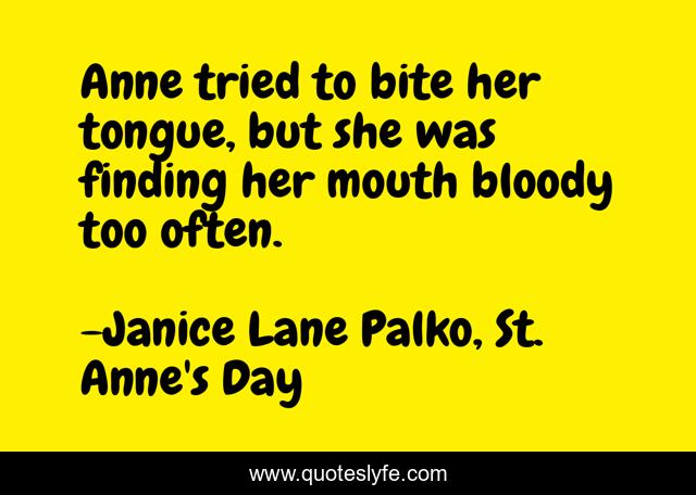 This page presents the quote "Anne tried to bite her tongue, but she was finding her mouth bloody too often.". Author of this quote is Janice Lane Palko, St. Anne's Day. This quote is about janice-lane-palko, st-anne-s-day, metaphor,.