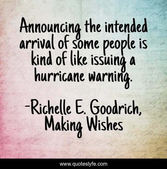 "Richelle E. Goodrich, Making Wishes Quotes." Quoteslyfe.com, 2025. Fri. 05 Dec. 2025. <https://www.quoteslyfe.com/quote/Announcing-the-intended-arrival-of-some-people-189455>.