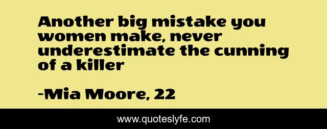 This page presents the quote "Another big mistake you women make, never underestimate the cunning of a killer". Author of this quote is Mia Moore, 22. .
