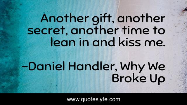 This page presents the quote "Another gift, another secret, another time to lean in and kiss me.". Author of this quote is Daniel Handler, Why We Broke Up. This quote is about secret, gift, love, kiss, affection,.