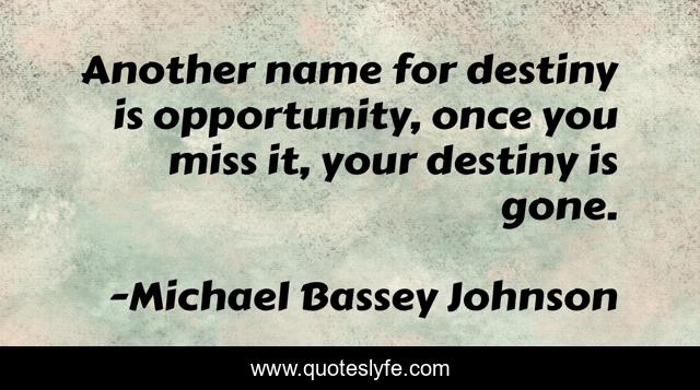 "Michael Bassey Johnson Quotes." Quoteslyfe.com, 2025. Fri. 05 Dec. 2025. <https://www.quoteslyfe.com/quote/Another-name-for-destiny-is-opportunity-once-107563>.