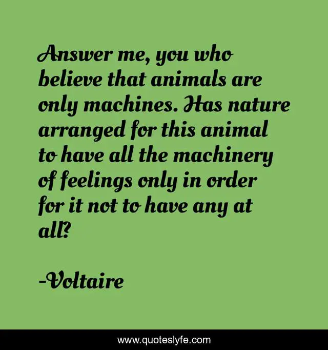 "Voltaire Quotes." Quoteslyfe.com, 2025. Fri. 05 Dec. 2025. <https://www.quoteslyfe.com/quote/Answer-me-you-who-believe-that-animals-175471>.