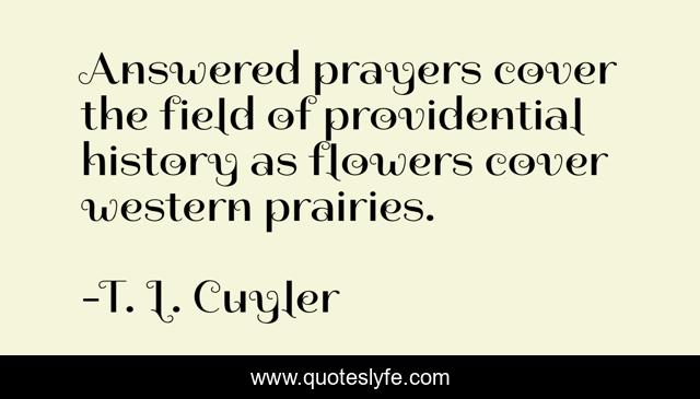 This page presents the quote "Answered prayers cover the field of providential history as flowers cover western prairies.". Author of this quote is T. L. Cuyler. .