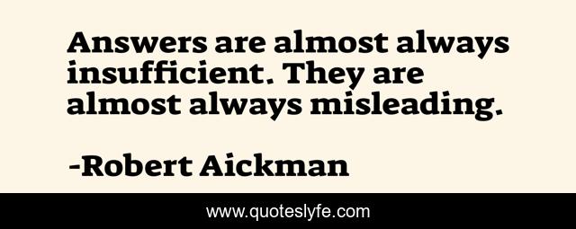 "Robert Aickman Quotes." Quoteslyfe.com, 2025. Fri. 05 Dec. 2025. <https://www.quoteslyfe.com/quote/Answers-are-almost-always-insufficient-They-are-156184>.