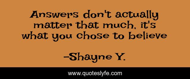"Shayne Y. Quotes." Quoteslyfe.com, 2025. Fri. 05 Dec. 2025. <https://www.quoteslyfe.com/quote/Answers-don-t-actually-matter-that-much-239891>.