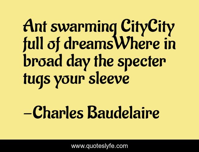 This page presents the quote "Ant swarming CityCity full of dreamsWhere in broad day the specter tugs your sleeve". Author of this quote is Charles Baudelaire. This quote is about city, cities,.