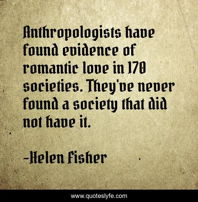"Helen Fisher Quotes." Quoteslyfe.com, 2025. Tue. 09 Dec. 2025. <https://www.quoteslyfe.com/quote/Anthropologists-have-found-evidence-of-romantic-love-324627>.
