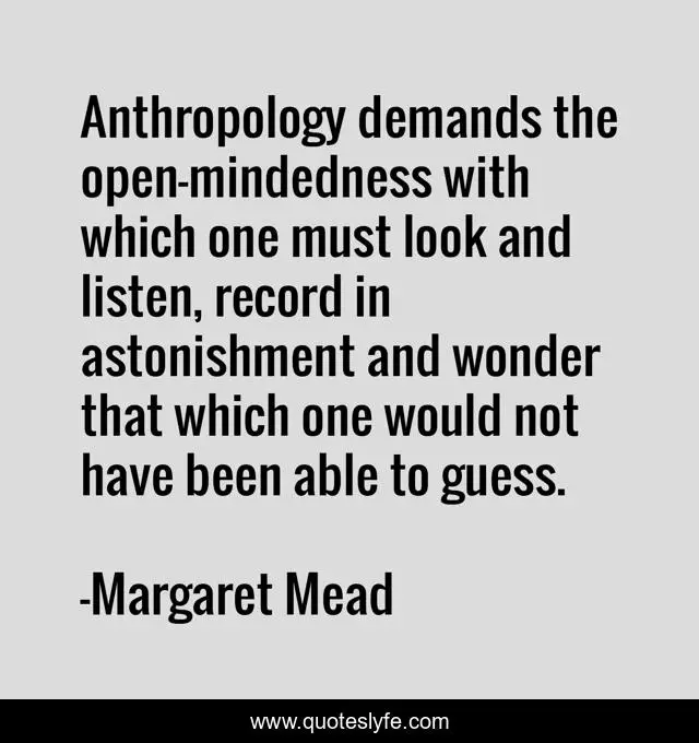 "Margaret Mead Quotes." Quoteslyfe.com, 2025. Sat. 06 Dec. 2025. <https://www.quoteslyfe.com/quote/Anthropology-demands-the-open-mindedness-with-which-292744>.