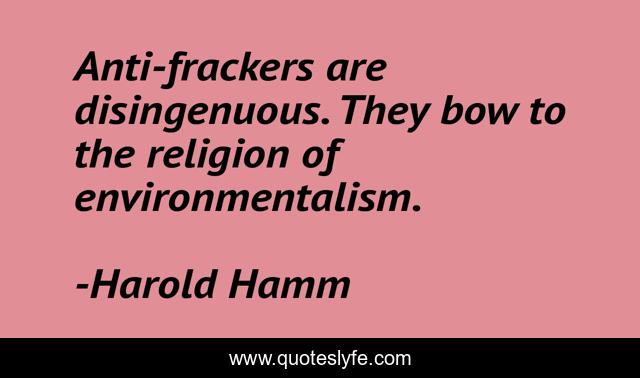 This page presents the quote "Anti-frackers are disingenuous. They bow to the religion of environmentalism.". Author of this quote is Harold Hamm. This quote is about disingenuous, bow,.