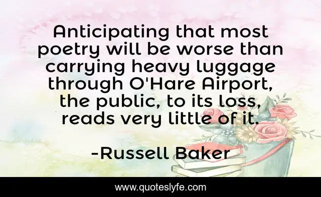 This page presents the quote "Anticipating that most poetry will be worse than carrying heavy luggage through O'Hare Airport, the public, to its loss, reads very little of it.". Author of this quote is Russell Baker. This quote is about loss, little, through,.