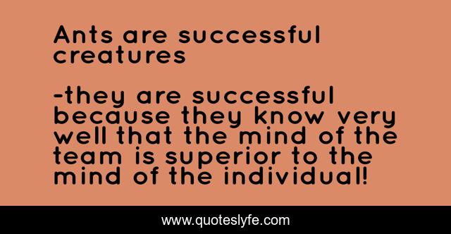 This page presents the quote "Ants are successful creatures". Author of this quote is they are successful because they know very well that the mind of the team is superior to the mind of the individual!. .