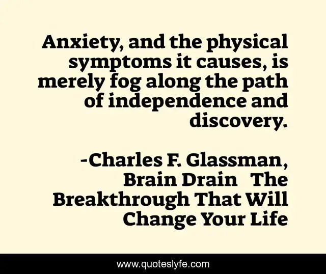"Charles F. Glassman, Brain Drain The Breakthrough That Will Change Your Life Quotes." Quoteslyfe.com, 2025. Mon. 08 Dec. 2025. <https://www.quoteslyfe.com/quote/Anxiety-and-the-physical-symptoms-it-causes-146878>.