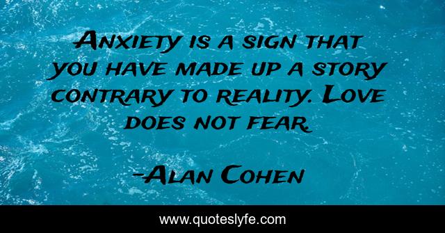 This page presents the quote "Anxiety is a sign that you have made up a story contrary to reality. Love does not fear.". Author of this quote is Alan Cohen. This quote is about fear, anxiety, love, story, affection,.