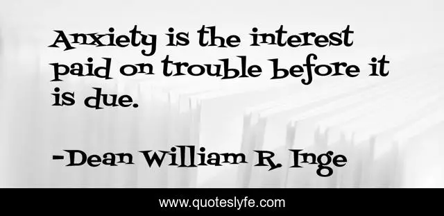 "Dean William R. Inge Quotes." Quoteslyfe.com, 2025. Fri. 05 Dec. 2025. <https://www.quoteslyfe.com/quote/Anxiety-is-the-interest-paid-on-trouble-260290>.